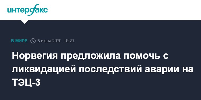 Норвегия предложила помочь с ликвидацией последствий аварии на ТЭЦ-3