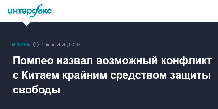 "Соединенные Штаты всегда помнят, что, конфликт, если мы в него вступаем, является крайним средством, когда у нас не остается другого выбора для защиты свободы", - сказал он, комментируя разрабатываемый в КНР закон о национальной безопасности Гонконга.