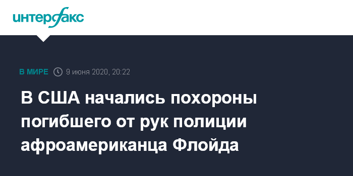 Телеканал отмечает, что после церемонии тело Флойда привезут на кладбище Houston Memorial Gardens в городе Перленд. Процессию будут сопровождать сотрудники департамента полиции Хьюстона.