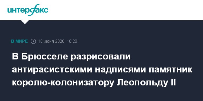 Москва. 10 июня. INTERFAX.RU - Очередное скульптурное изображение бельгийского короля Леопольда II, правление которого (1865-1909 гг.) связано с чрезвычайно жестокой колониальной политикой в Африке, подверглось осквернению.