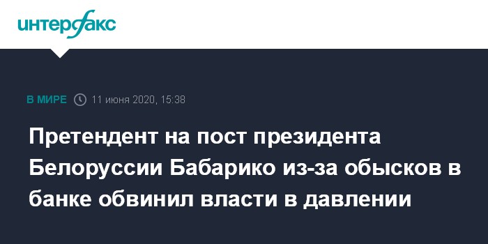 Претендент на пост президента Белоруссии Бабарико из-за обысков в банке обвинил власти в давлении