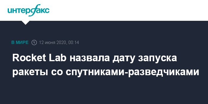 Москва. 11 июня. INTERFAX.RU - Отмененный в четверг из-за сильного ветра запуск на орбиту ракеты Electron с тремя спутниками в интересах Национального управления военно-космической разведки США (NRO), а также с малыми космическим аппаратами NASA и австралийского университета, перенесен на субботу, сообщила американская частная компания-разработчик носителя Rocket Lab.