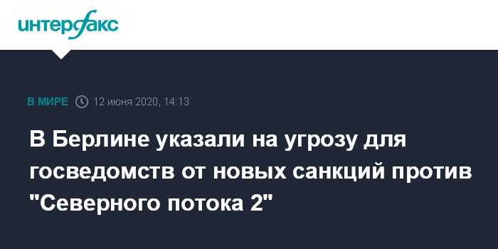 Москва. 12 июня. INTERFAX.RU - В правительстве Германии опасаются, что новые санкции против "Северного потока 2" , которые планируют ввести в США, могут затронуть немецкие госведомства.
