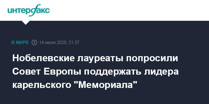 Нобелевские лауреаты попросили Совет Европы поддержать лидера карельского "Мемориала"