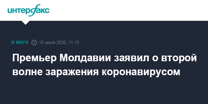 Москва. 15 июня. INTERFAX.RU - Премьер-министр Молдавии Ион Кику считает, что в республике начинается вторая волна заражения коронавирусом. Об этом он заявил в понедельник утром, на брифинге после еженедельного совещания с президентом и премьер-министром.