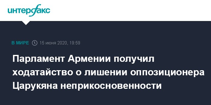 Москва. 15 июня. INTERFAX.RU - Генпрокурор Армении направил ходатайство в парламент республики о лишении неприкосновенности депутата парламента, руководителя оппозиционной партии "Процветающая Армения" Гагика Царукяна и о возбуждении против него уголовного дела.