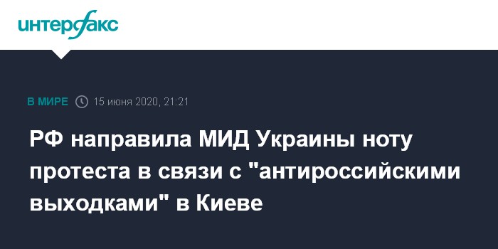 Москва. 15 июня. INTERFAX.RU - Посольство Российской Федерации в Киеве направило ноту протеста в МИД Украины в связи с акцией, устроенной 12 июня в отношении российской дипмиссии, сообщает МИД РФ.