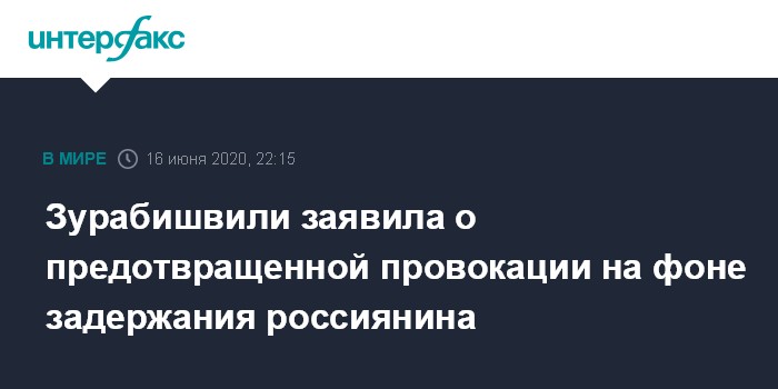 Москва. 16 июня. INTERFAX.RU - Президент Грузии Саломе Зурабишвили считает, что грузинским спецслужбам, задержавшим в Тбилиси гражданина РФ Васамбека Бокова в рамках расследования дела о подготовке заказного убийства, удалось предотвратить "провокацию, направленную против стабильности в стране".
