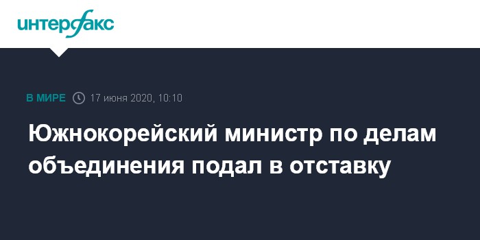 Москва. 17 июня. INTERFAX.RU - В Республике Корея министр по делам объединения Ким Ён Чхоль сообщил, что подал в отставку, поскольку не оправдал возлагавшихся на него надежд по улучшению межкорейских отношений. Это передает агентство "Ренхап".