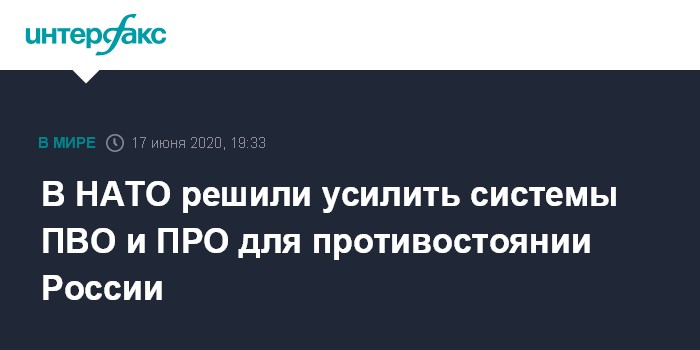 Москва. 17 июня. INTERFAX.RU - Министры обороны стран НАТО на саммите приняли решение усилить системы ПВО и ПРО альянса, чтобы противостоять российской ядерной ракетной угрозе, заявил в среду глава Североатлантического альянса Йенс Столтенберг.