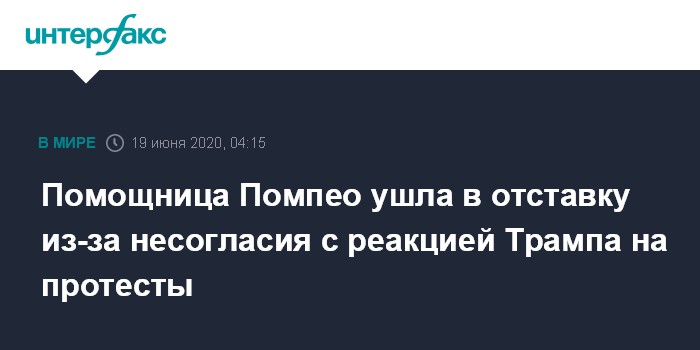 Помощница Помпео ушла в отставку из-за несогласия с реакцией Трампа на протесты
