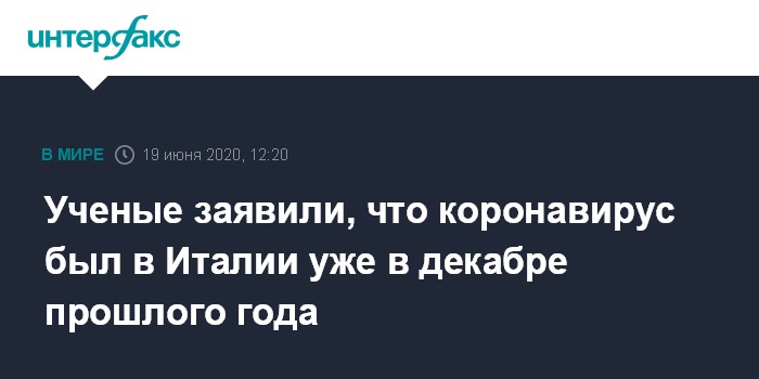 "Результаты, подтвержденные в двух разных лабораториях с использованием двух разных методов, показали присутствие РНК SARS-COV-2 (нового типа коронавируса - ИФ) в образцах, взятых в Милане и Турине 19 декабря 2019 года, а также в Болонье 29 января 2020 года", - говорится в заявлении представителя департамента окружающей среды и здравоохранения ISS Джузеппины Ла Россы.