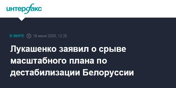 Москва. 19 июня. INTERFAX.RU - Президент Белоруссии Александр Лукашенко после задержания экс-главы Белгазпромбанка Виктора Бабарико заявил, что власти смогли сорвать масштабный план по дестабилизации Белоруссии с участием "зарубежных кукловодов".