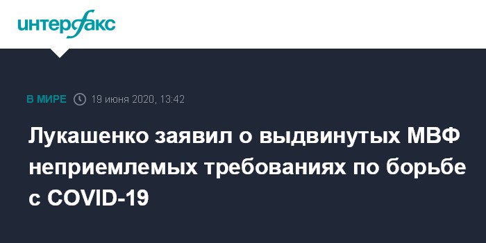 Лукашенко заявил о выдвинутых МВФ неприемлемых требованиях по борьбе с COVID-19
