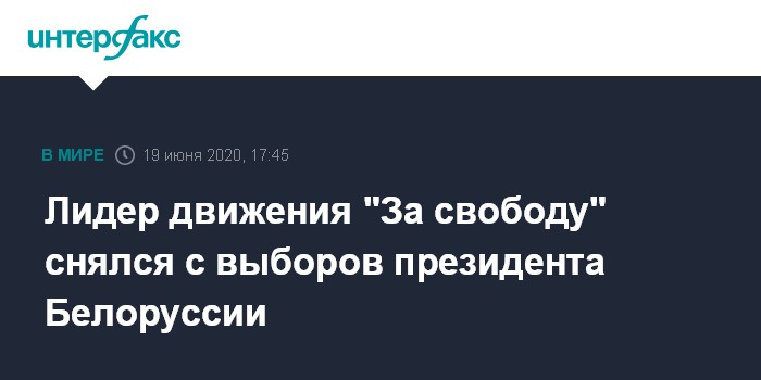 Москва. 19 июня. INTERFAX.RU - Глава движения "За Свободу" Юрий Губаревич, претендующий на пост президента Белоруссии, заявил о своем снятии с выборов.
