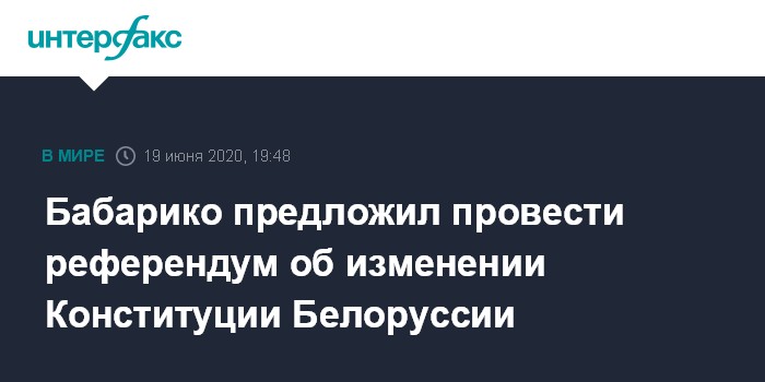 Москва. 19 июня. INTERFAX.RU - Претендующий на пост президента Белоруссии экс-банкир Виктор Бабарико заявил о начале кампании по проведению референдума по изменению Конституции.