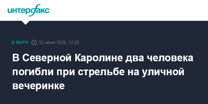 Москва. 22 июня. INTERFAX.RU - В Северной Каролине произошла стрельба по людям в крупном городе Шарлотт, погибли два человека и не менее семи были ранены, сообщает АР со ссылкой на сообщение городского департамента полиции.