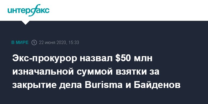 Экс-прокурор назвал $50 млн изначальной суммой взятки за закрытие дела Burisma и Байденов