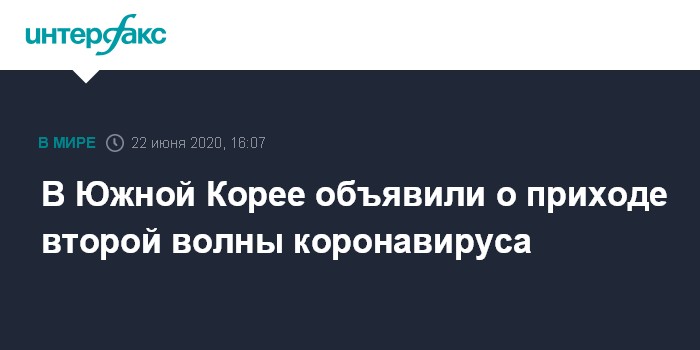 Москва. 22 июня. INTERFAX.RU - В Южной Корее началась вторая волна пандемии коронавируса, сообщает в понедельник BBC News со ссылкой на главу корейского Центра контроля и профилактики заболеваний (KCDC) Чон Ын Гён.