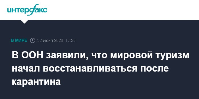 Москва. 22 июня. INTERFAX.RU - После нескольких месяцев беспрецедентного падения туристическая отрасль начала восстанавливаться в некоторых регионах мира, сообщает в понедельник Всемирная туристская организация ООН (UNWTO).
