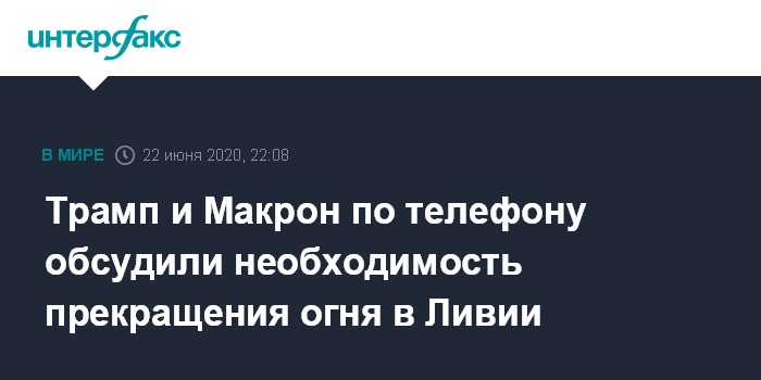 Он добавил, что Трамп и Макрон вновь заявили, что "военная эскалация с обеих сторон должна быть немедленно прекращена, чтобы предотвратить превращение ливийского конфликта в еще более опасный и неразрешимый".