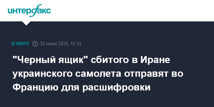 "В телефонном разговоре с министром иностранных дел Канады Франсуа-Филиппом Шампанем в понедельник министр иностранных дел Зариф сообщил ему, что Иран отправит "черный ящик" украинского самолета во Францию в ближайшие дни, чтобы проанализировать его данные. Высокопоставленный иранский дипломат отметил, что решение об отправке бортового регистратора было принято уже давно и что оно будет реализовано в ближайшее время", - говорится в сообщении на сайте МИД Ирана в понедельник.
