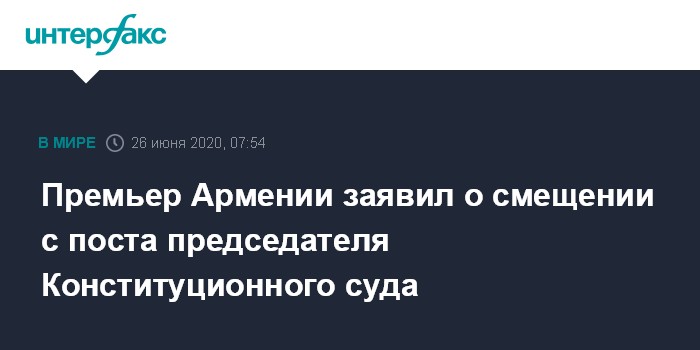 Премьер Армении заявил о смещении с поста председателя Конституционного суда