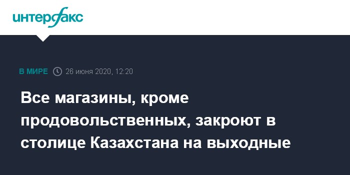 "27-28 июня в столице будут работать только продовольственные магазины у дома. График работы - с 10 до 17 часов. В выходные дни будет приостановлена деятельность всех ТРЦ, торговых домов, сетевых магазинов, крытых продовольственных и непродовольственных рынков, базаров/магазинов", - говорится в сообщении пресс-службы.