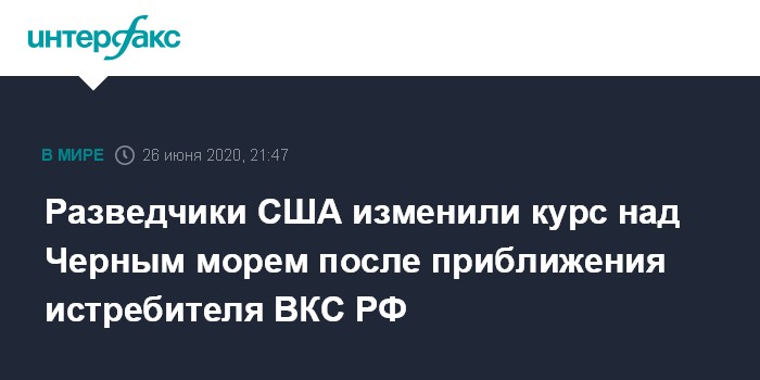 Москва. 26 июня. INTERFAX.RU - Американские самолеты-разведчики поменяли маршрут над Черным морем после того, как российские военные подняли на перехват истребитель Су-30, сообщили в пятницу в Минобороны РФ.