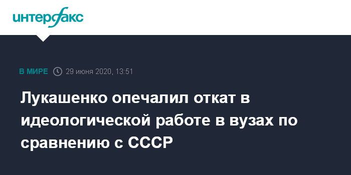 Москва. 29 июня. INTERFAX.RU - Президент Белоруссии Александр Лукашенко акцентировал внимание педагогического состава вузов на важности государственной идеологии в образовательном процессе.