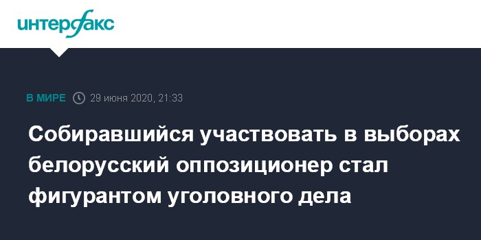 Собиравшийся участвовать в выборах белорусский оппозиционер стал фигурантом уголовного дела