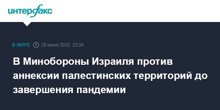 В офисе премьер-министра Израиля Биньямина Нетаньяху пока не прокомментировали, действительно ли руководство страны решило отложить планы аннексии до завершения эпидемии.