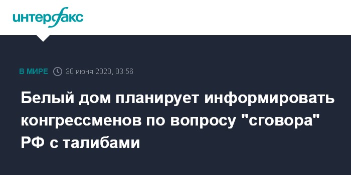 Белый дом планирует информировать конгрессменов по вопросу "сговора" РФ с талибами