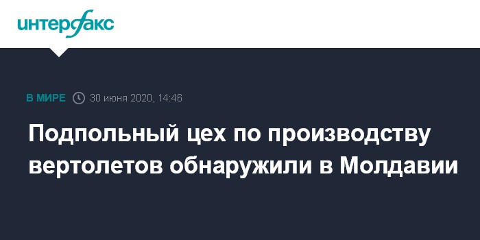 Москва. 30 июня. INTERFAX.RU - В Молдавии в ходе спецоперации обнаружен незаконно работающий мини-завод, который выпускал вертолеты для нелегальных поставок в страны СНГ, сообщила во вторник пресс-служба молдавской Генпрокуратуры.