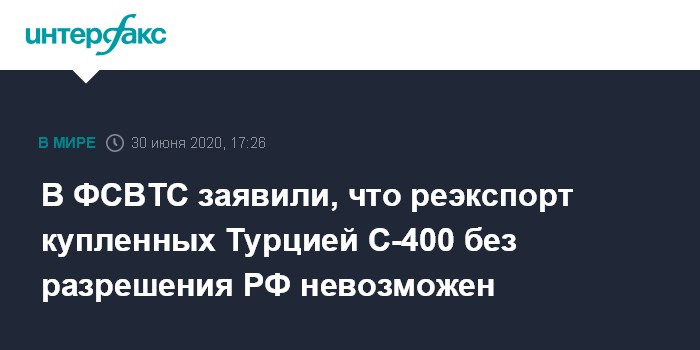 В ФСВТС заявили, что реэкспорт купленных Турцией С-400 без разрешения РФ невозможен