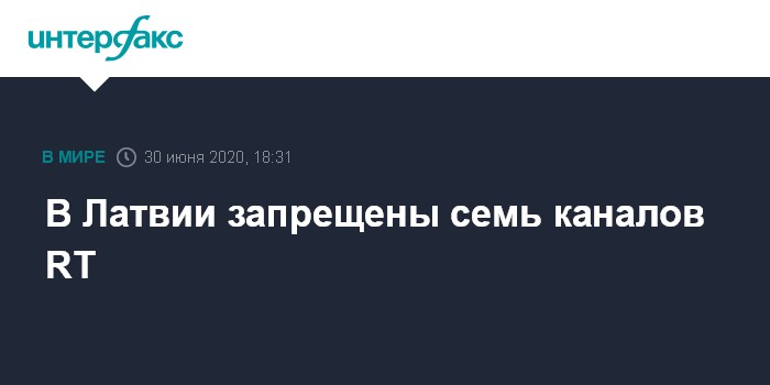 Москва. 30 июня. INTERFAX.RU - Национальный совет по электронным СМИ (НСЭСМИ) Латвии решил запретить на территории страны трансляцию семи программ телеканала RT, который ранее был известен как Russia Today, и призвал другие страны ЕС поступить аналогичным образом.