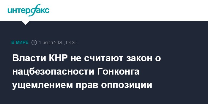 Власти КНР не считают закон о нацбезопасности Гонконга ущемлением прав оппозиции