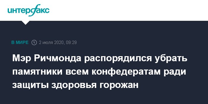 Мэр Ричмонда распорядился убрать памятники всем конфедератам ради защиты здоровья горожан