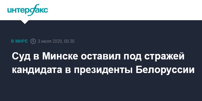 Суд в Минске оставил под стражей кандидата в президенты Белоруссии