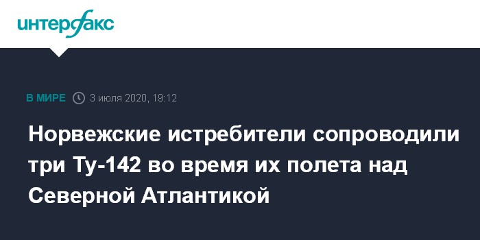 Норвежские истребители сопроводили три Ту-142 во время их полета над Северной Атлантикой