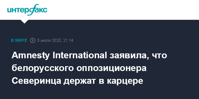 Москва. 5 июля. INTERFAX.RU - Международная правозащитная организация Amnesty International объявила акцию срочной помощи по освобождению белорусского оппозиционера Павла Северинца, арестованного 7 июня. Об этом сообщается на странице организации.