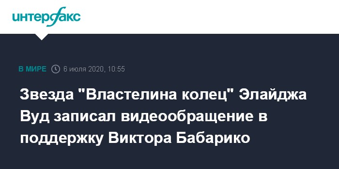 Звезда "Властелина колец" Элайджа Вуд записал видеообращение в поддержку Виктора Бабарико