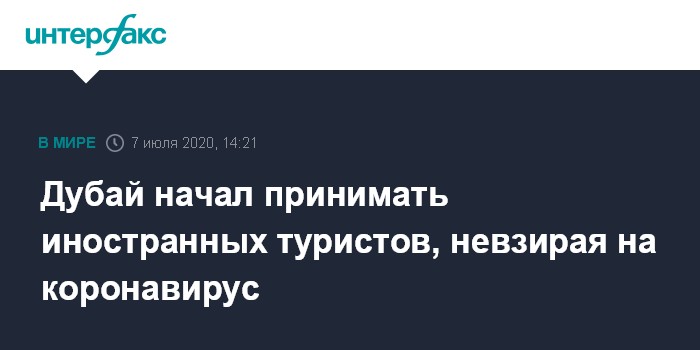 Москва. 7 июля. INTERFAX.RU - Дубай со вторника начал принимать иностранных туристов, невзирая на пандемию COVID-19 в мире, сообщает Associated Press.