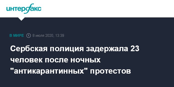 Беспорядки устроили люди, которые вышли на улицы в знак протеста против планов президента Александра Вучича ввести комендантский час с вечера пятницы из-за коронавируса. В столкновениях пострадали 43 полицейских и 17 демонстрантов. Полиция и спецназ применяли силу только в случае крайней необходимости, заверил Ребич.