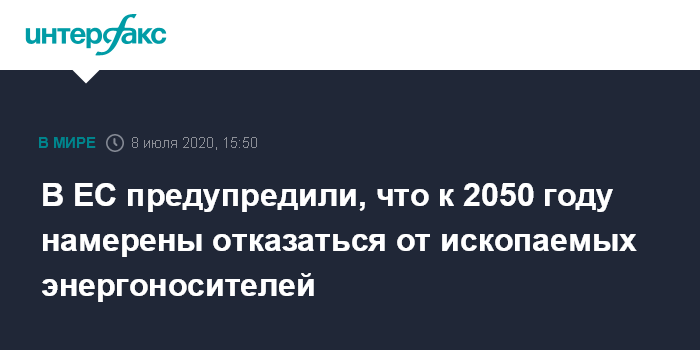 В ЕС предупредили, что к 2050 году намерены отказаться от ископаемых энергоносителей