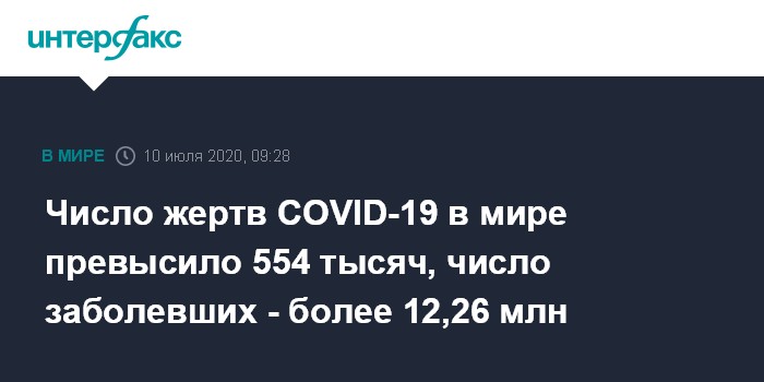 Число жертв COVID-19 в мире превысило 554 тысяч, число заболевших - более 12,26 млн