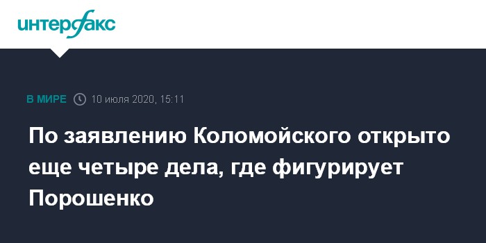 Москва. 10 июля. INTERFAX.RU - В Офисе генерального прокурора Украины на днях зарегистрированы четыре уголовных производства по заявлению бизнесмена иэкс-акционера ПриватБанка Игоря Коломойского, в которых фигурирует пятый президент Украины, лидер партии "Европейская солидарность" Петр Порошенко, сообщил адвокат бывшего главы государства Игорь Головань.