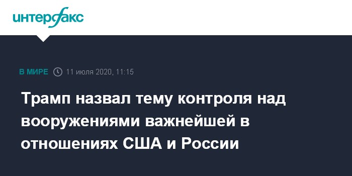 Москва. 11 июля. INTERFAX.RU - Президент США Дональд Трамп заявил изданию The Washington Post, что совместная с Россией работа по теме контроля над вооружениями - самый значительный аспект двусторонних отношений Вашингтона и Москвы.
