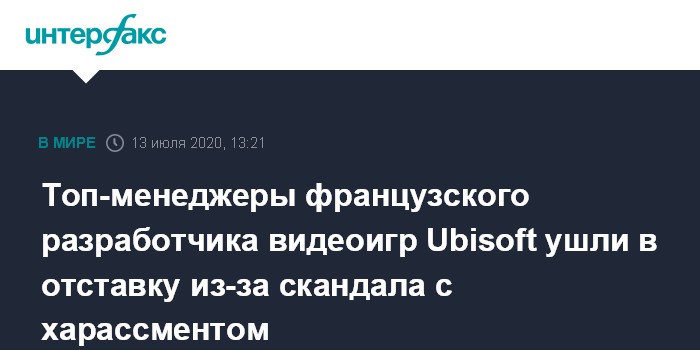 В июне в соцсетях появились обвинения в сексуальных домогательствах и неподобающем поведении на работе против некоторых топ-менеджеров Ubisoft. В начале июля Liberation опубликовала результаты расследования, в рамках которого газете удалось собрать показания бывших сотрудников компании.