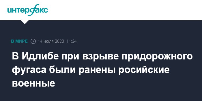 Москва. 14 июля. INTERFAX.RU - В Идлибе произошел взрыв фугаса по пути следования совместного российско-турецкого патруля на трассе М4. Ранения получили трое росссиян и несколько турецких военных, сообщил российский Центр примирения враждующих сторон в Сирии.